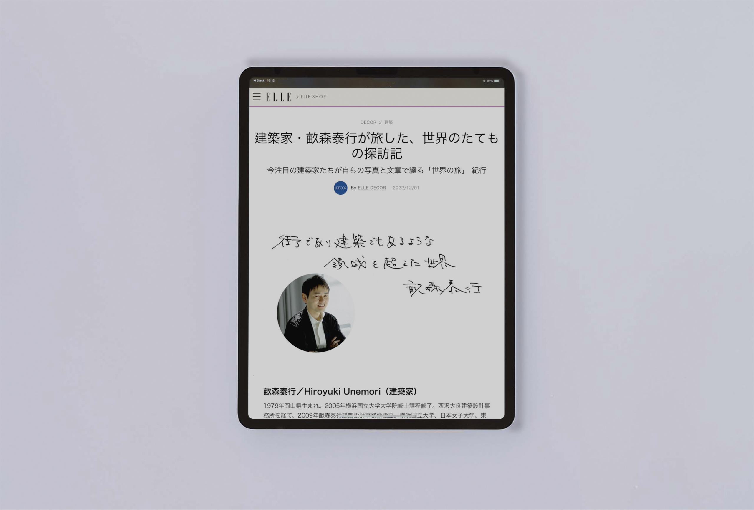 Essay:Published in ELLE DECOR