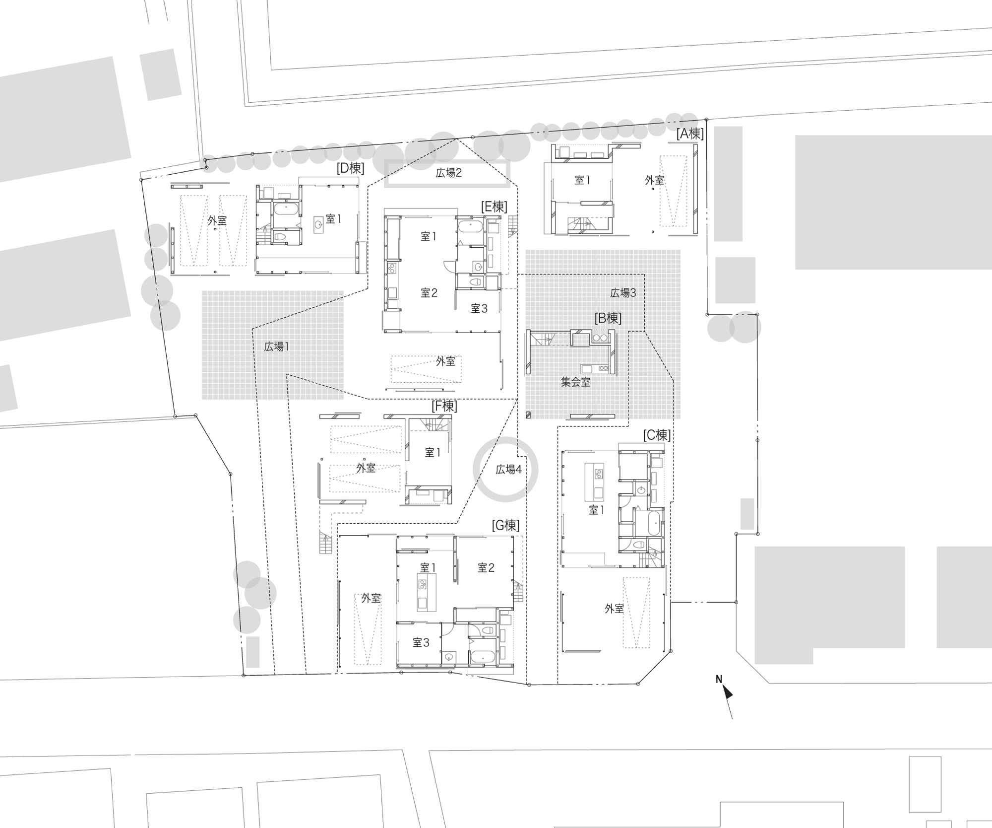 主要用途:専用住宅(6棟)+集会室(1棟)